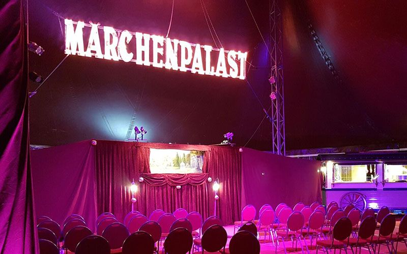 Eine mobile Bühne ist ebenfalls verfügbar, die unter freiem Himmel oder in nahezu jeder Räumlichkeit aufgebaut werden kann.