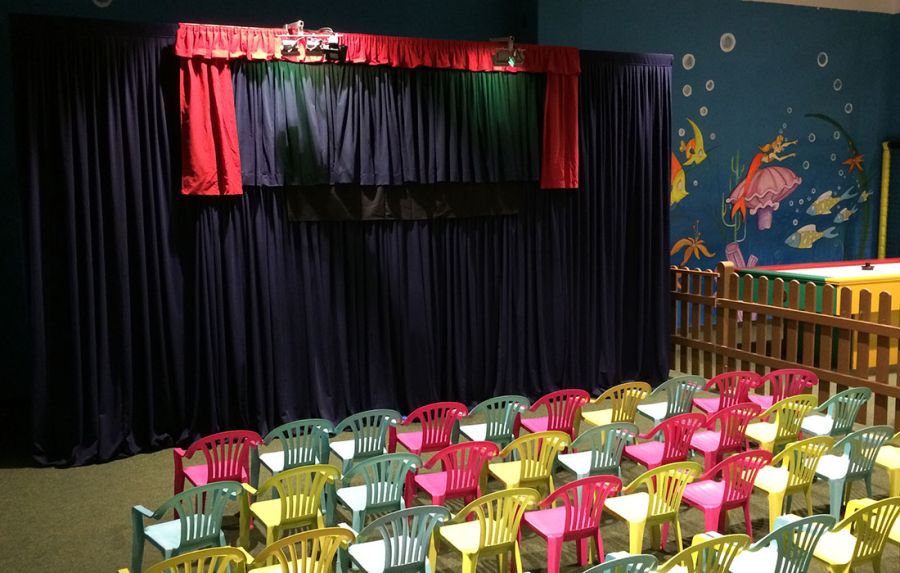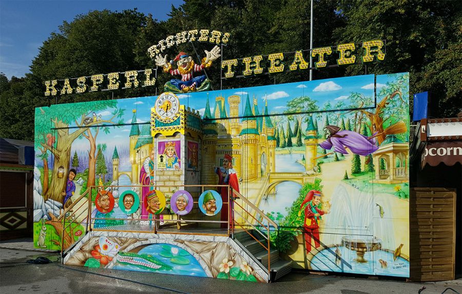 Unser mobiler Theaterwagen bietet Platz für ca. 60 Personen und ist eine wetterunabhängige Attraktion für Groß und Klein.